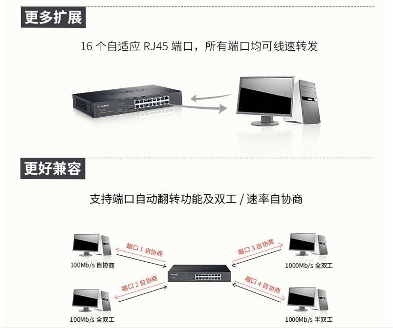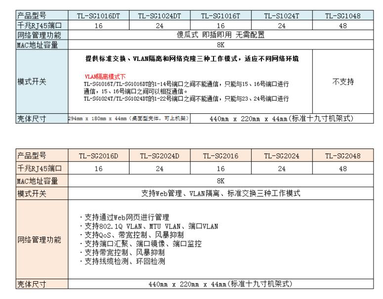 tp-link16口全千兆網絡交換機TL-SG1016DT機架式1000M接口分線器桌面tplink可分12路10個9路光纖監控VLAN匯聚