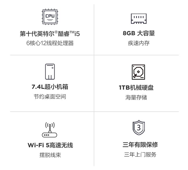 聯想臺式機電腦天逸510S/510PRO 十代六核I5-10400/四核I3 家用辦公商用財務炒股網課游戲設計全整套迷你主機