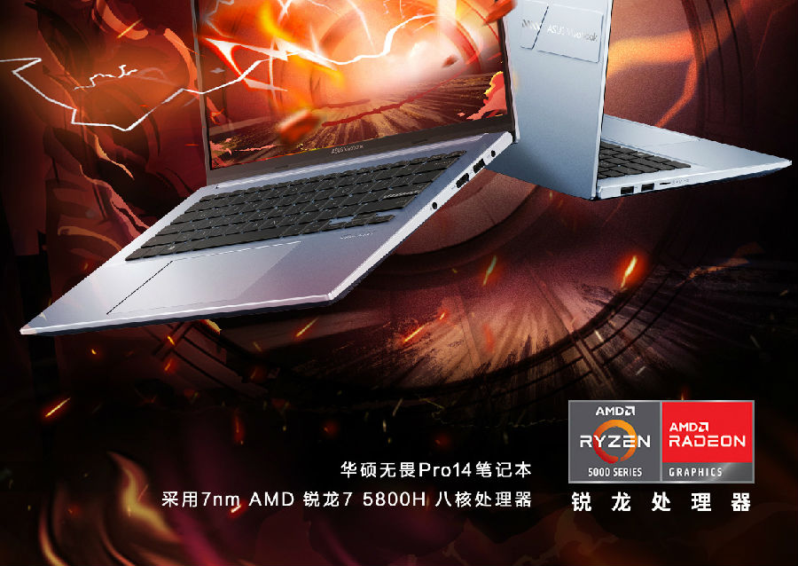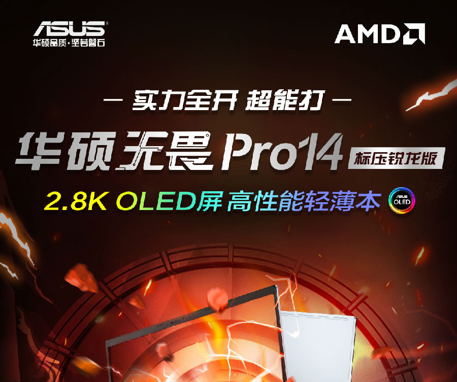 華碩無(wú)畏Pro14 標(biāo)壓銳龍版 2.8K OLED屏輕薄筆記本電腦