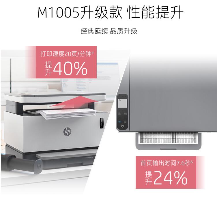 HP/惠普 Laser NS 1005W 創系列 智能閃充大粉倉一體機 無線激光多功能 無線打印復印掃描三合一