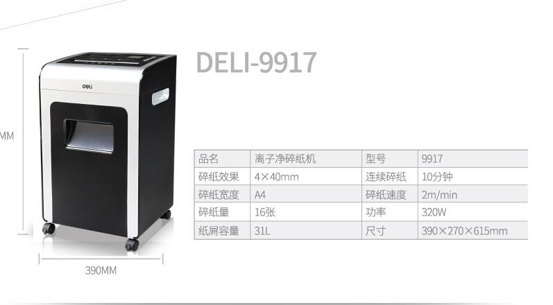 得力9917文件離子凈碎紙機(jī)辦公商用機(jī)密資料粉碎機(jī)3級保密