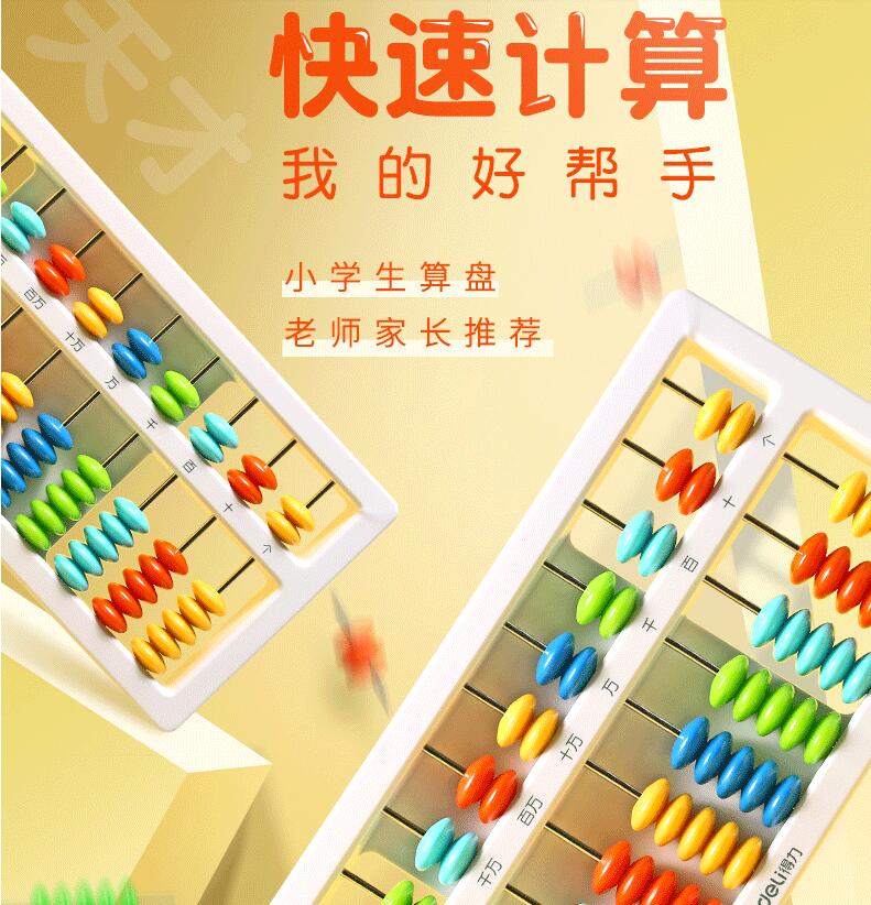 得力算盤小學生珠心算幼兒園5珠7珠益智玩具小學生二年級專用兒童算數加減法算術計數器學具盒一年級珠算算盤